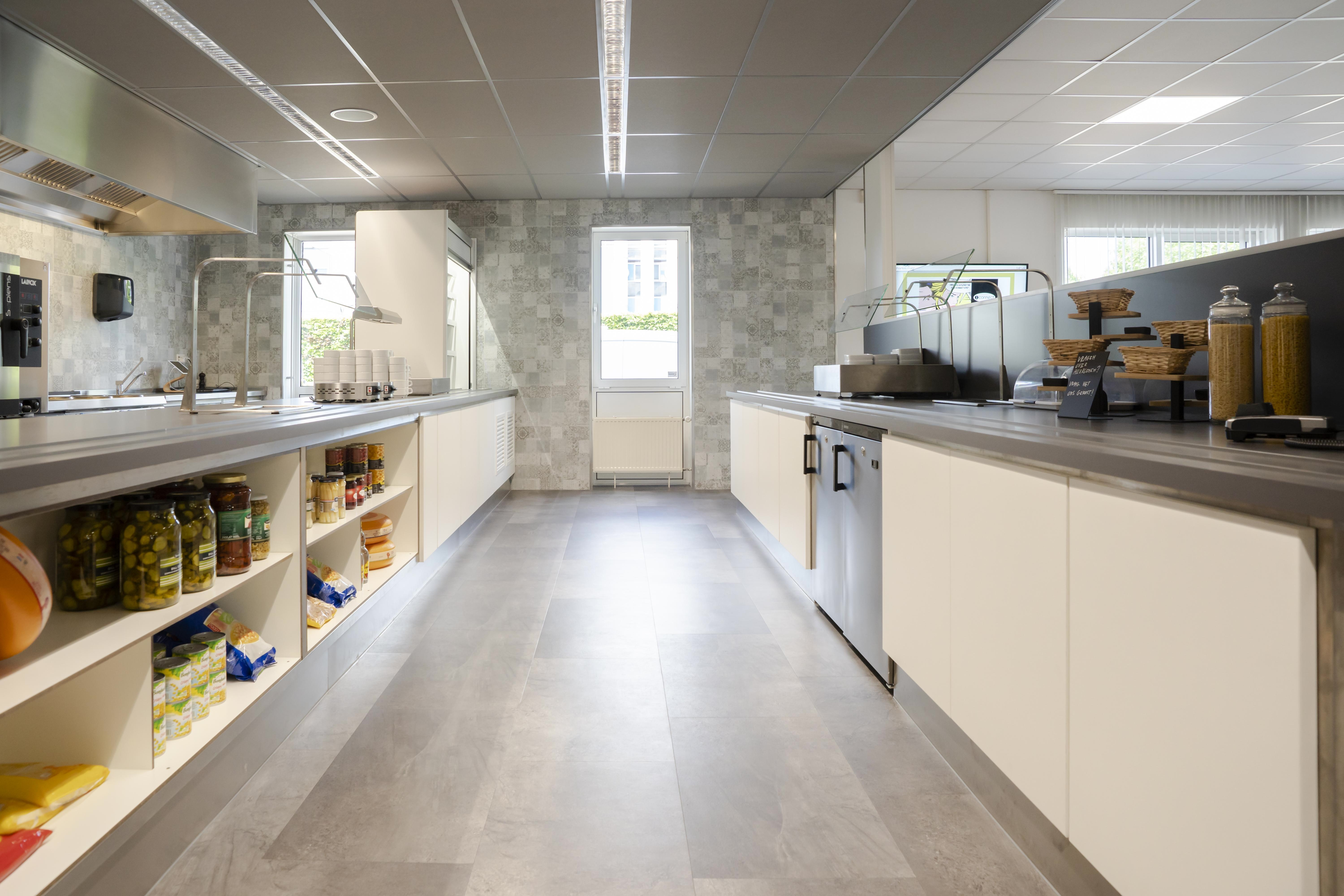 Vanwege de groei van de organisatie is in het naastgelegen pand een nieuw bedrijfsrestaurant ingericht. Een plek om te lunchen, werken, vergaderen, bezoek te ontvangen, maar ook om je even terug te trekken.